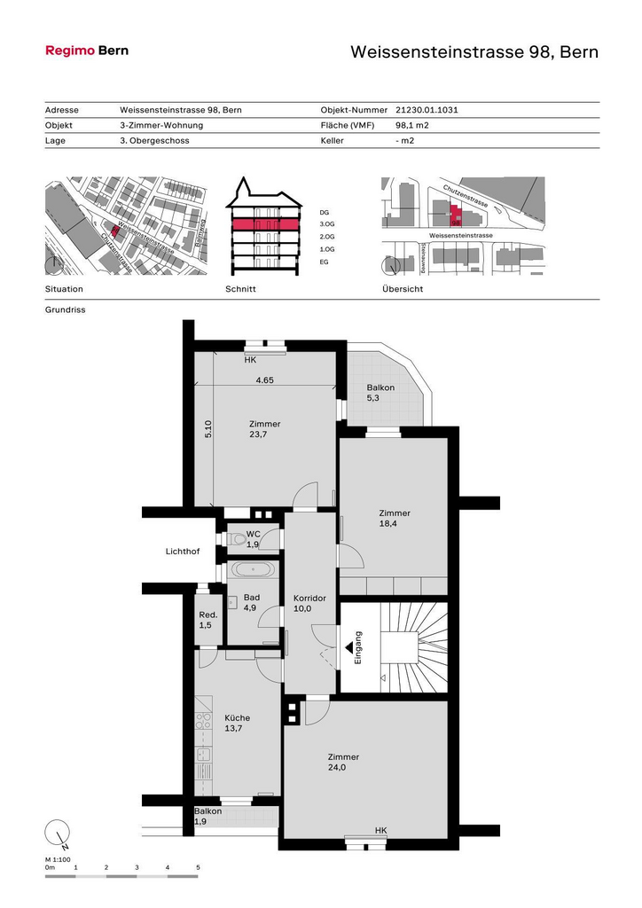 An der Weissensteinstrasse 98 in Bern wartet eine gepflegte 3-Zimmerwohnung auf Sie - ideal für Singles, Paare oder kleine Familien, die die Nähe zur Stadt und gleichzeitig ruhiges Wohnen im Grünen schätzen.