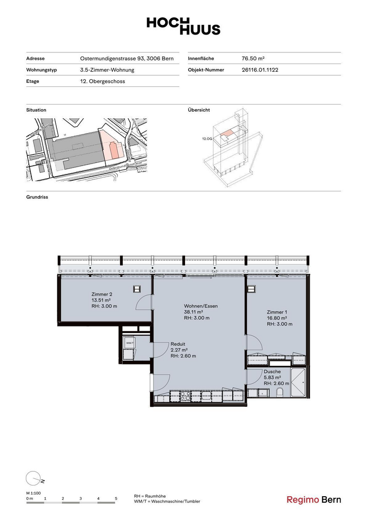 Ein besonderes Merkmal sind die exklusiven Mieterbenefits, die das Hochhuus einzigartig machen. Die grosszügige Lobby dient als stilvoller Treffpunkt und Begegnungsort mit direktem Zugang zur Aussenfläche. Der multifunktionale Gemeinschaftsraum mit Küche und Nasszelle, buchbar via RegimoApp, bietet Raum für private Anlässe und Zusammenkünfte. Hoch über Bern geniessen die Bewohnerinnen und Bewohner zudem die möblierte Dachterrasse mit Grillstation, Sonnensegeln, Bepflanzung, Wasserbecken und eindrucksvoller Aussicht. Solche gemeinschaftlich nutzbaren Bereiche sind im Berner Wohnungsmarkt in dieser Art und Dimension einzigartig.