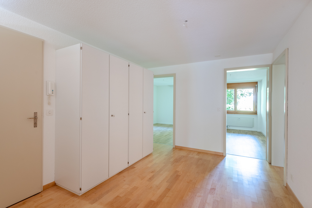 Die Wohnung befindet sich in einem ruhigen, familienfreundlichen Quartier. Einkaufsmöglichkeiten, Kindergarten, Primarschule sowie ÖV-Anschluss sind in wenigen Gehminuten erreichbar.