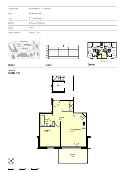 Zusätzlich auf Wunsch: Einstellplatz Tiefgarage, CHF 110.00/Monat