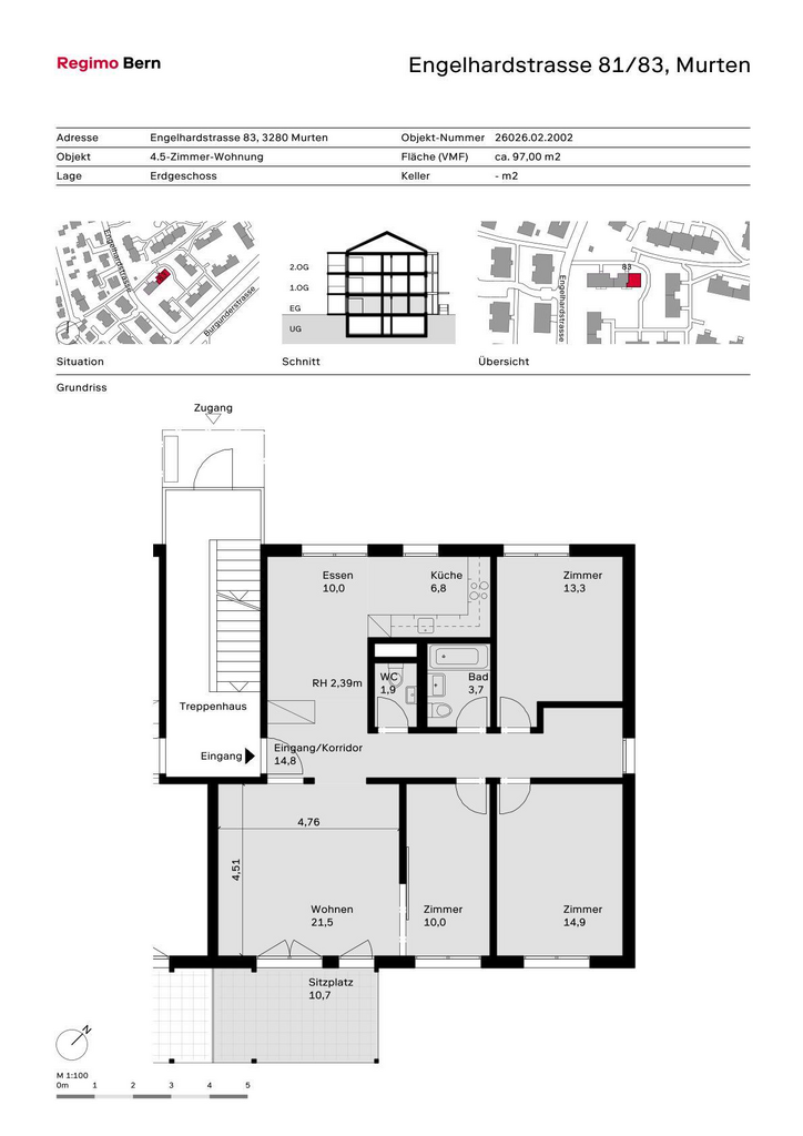 Zusätzlich auf Wunsch: Einstellplatz Tiefgarage, ab CHF 110.00/Monat