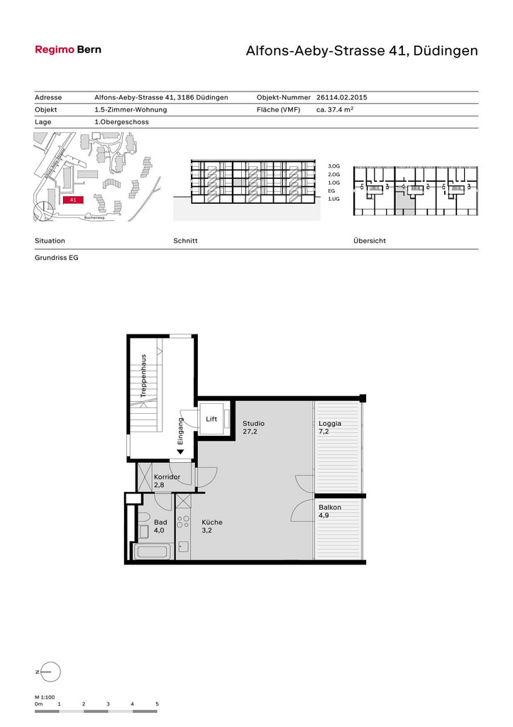 Zusätzlich auf Wunsch: Einstellplatz Tiefgarage, ab CHF 90.00/Monat.