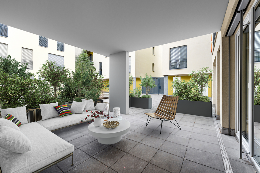 Hinweis: Die abgebildeten Fotos stammen von einer typenähnlichen Wohnung und können in Ausstattung und Grundriss leicht variieren. Sie dienen lediglich dazu, die Materialisierung der Wohnungen zu veranschaulichen.