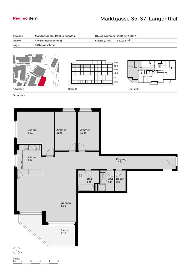 Zusätzlich auf Wunsch: Einstellplatz Tiefgarage, ab CHF 120.00/Monat