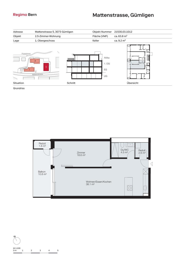 Zusätzlich auf Wunsch: Einstellplatz Tiefgarage, ab CHF 135.00/Monat